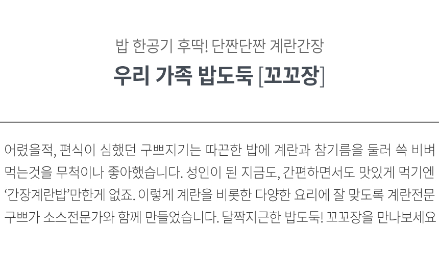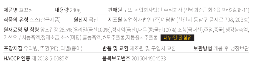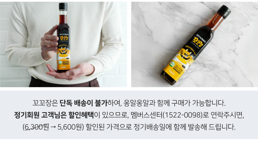 닫기 꼬꼬장 (280g / 1병 단품) 정기회원가: 5,600원 [안내] 손두부·꼬꼬장은 정기회원 전용 상품입니다. 멤버스센터 1522-0098 또는 카카오톡 플러스친구 '구쁘팜'을 통해 추가 요청이 가능합니다. 첨부파일 공유하기 네이버 메일 주소복사 좋아요67